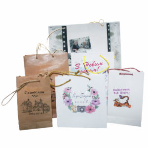 Пакети паперові 80-120г/м2 подарункові з наддруком 4+0, 4+4 (розміри ) Пакети пакувальні 80г/м2 1+0 розміром